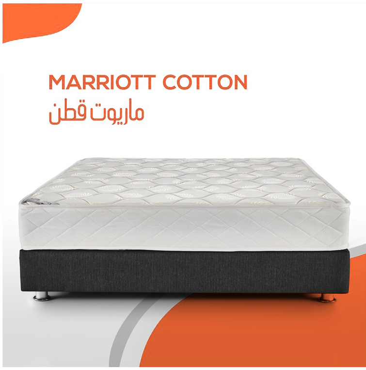 هى نوع مختلف من المراتب لمن يعاني من ألام في الظهر و الرقبة ، ماريوت مزيج من السفنج العالي الكثافة ( الطبي ) و طبقه من القطن ، فهي تعطيك الثبات في النوم مع الدعم لفقرات الظهر هى عباره عن شاسيه من الاسفنج الطبى المضغوط ليضمن عدم حدوث اى هبوط فى المرتبه باالضافه انها معالجه ضد الصدأ طبقه من اسفنج ربيويد طبى مضغوط كما نحتوى على اسفنج يانسن وطبقه القطن التى تجعل المرتبه اكثر راحه طبقه اللباد قطن مضغوط حراريا يعمل كعازل بين طبقات الاسفنج وطبقات االسفنج طبقه اسفنج 1.5سم كثافه 20+طبقه طبقه اسفنج يانسن 4.5 كثافه 28 وجه طبقه قطن من كل وجه كما تحتوى على وجهين لراحه اكثر طبقه اسفنج ربيوند طبى مضغوط كثافه 90 اسفنج1سم كثافه 20+فازلين 20 جرام قماش دبل نت المعالج ضد البكتريا وحشرات الفراش فتحات التهويه موجوده على جانبى المرتبه وزعت بطريقه مدروسه لضمان التهويه الجيده والكامله داخل المرتبه مما اليدع اى مجال لروائح كريهه او تعفن داخل المرتبة.